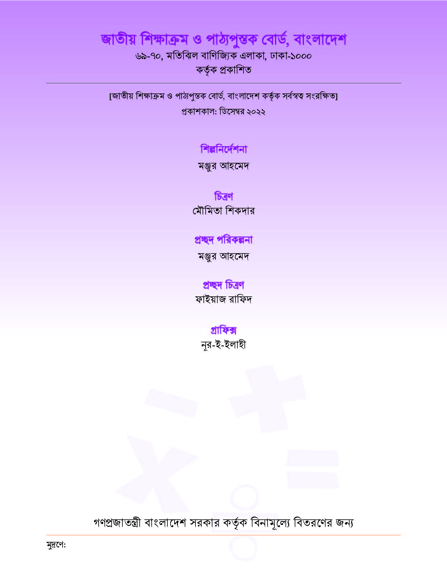 প্রকাশকঃ জাতীয় শিক্ষাক্রম ও পাঠ্যপুস্তক বোর্ড