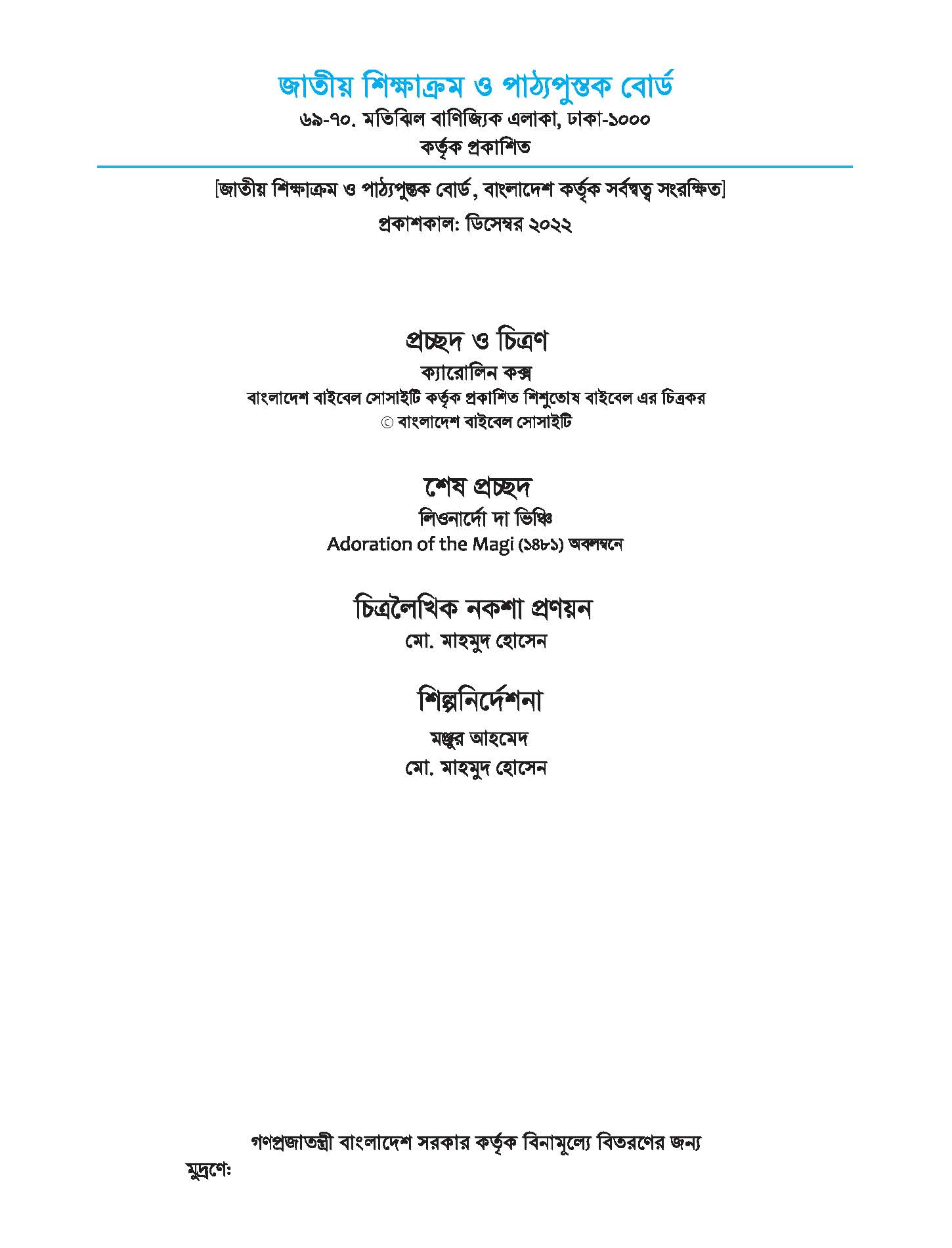 প্রকাশকঃ জাতীয় শিক্ষাক্রম ও পাঠ্যপুস্তক বোর্ড