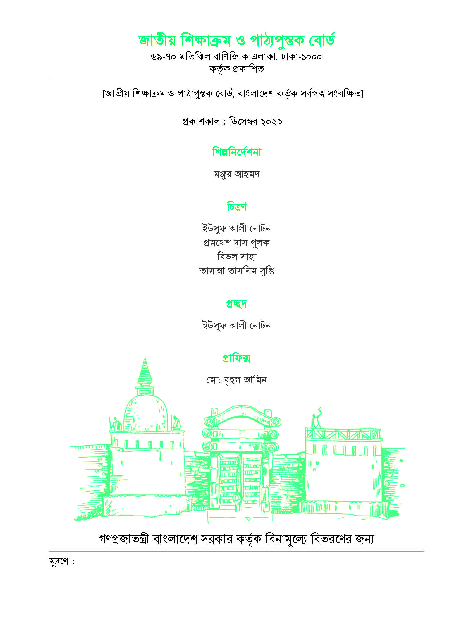 প্রকাশকঃ জাতীয় শিক্ষাক্রম ও পাঠ্যপুস্তক বোর্ড
