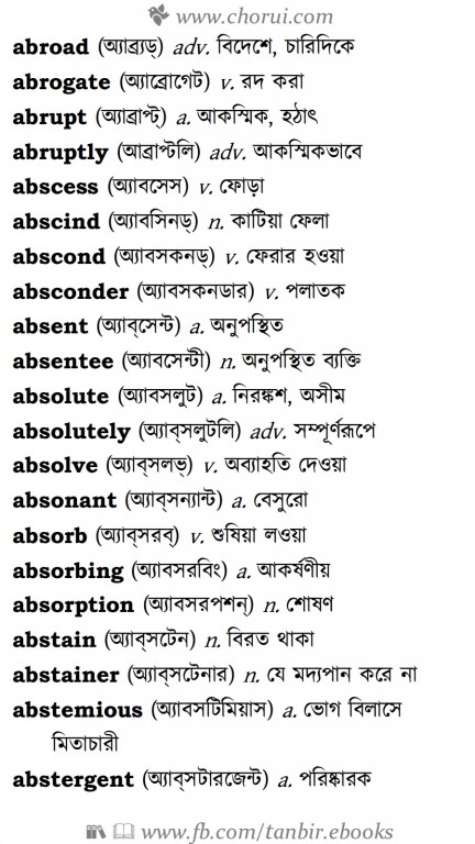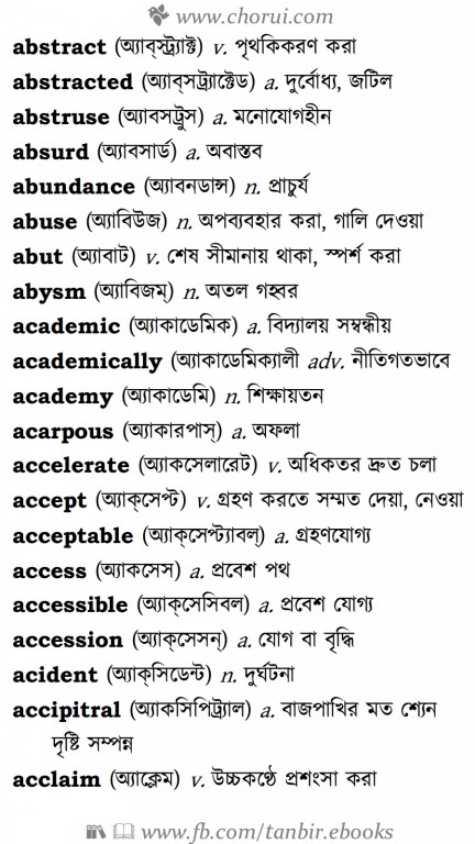 ১১৫০০+ ইংরেজী শব্দের বাংলা উচ্চারন ও অর্থ সহ ইংলিশ টু বাংলা ডিকশনারি