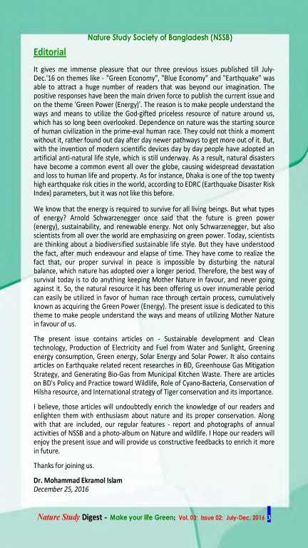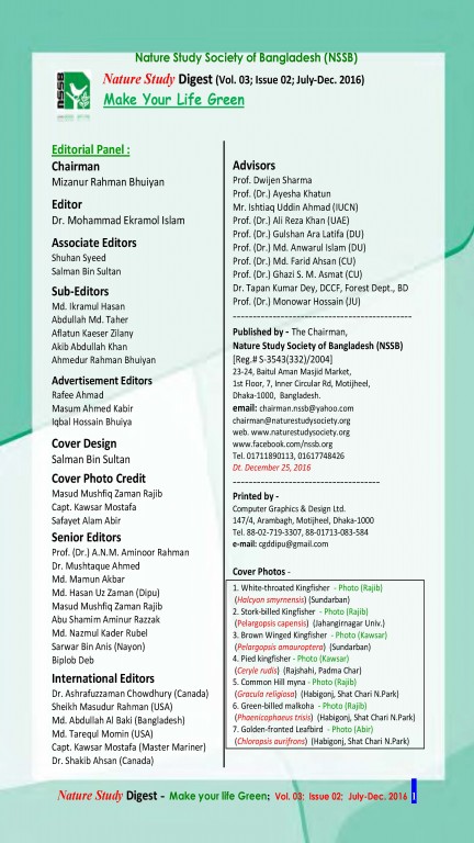 ন্যাচার স্টাডি ডাইজেস্ট (বর্ষ-০৩, সংখ্যা-০১)