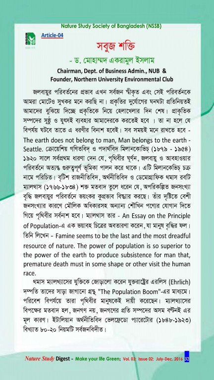 ন্যাচার স্টাডি ডাইজেস্ট (বর্ষ-০৩, সংখ্যা-০২)