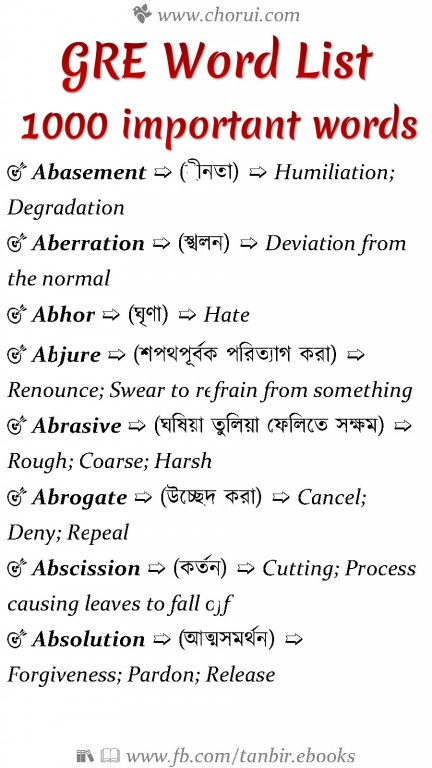 জিআরই প্রস্তুতির জন্য খুব গুরুত্বপূর্ন ১০০০+ ইংলিশ ওয়ার্ড